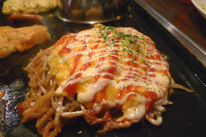 お好み焼きも焼きそばも1度に楽しめる、モダン焼きです。どちらも一緒に楽しみたい方にはおすすめです。